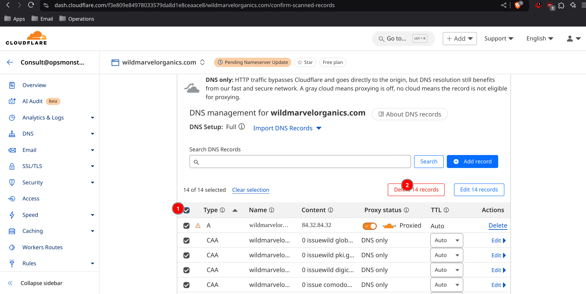 !!!!! Alert : Only Delete DNS if new domain, otherwise do not touch !!!!