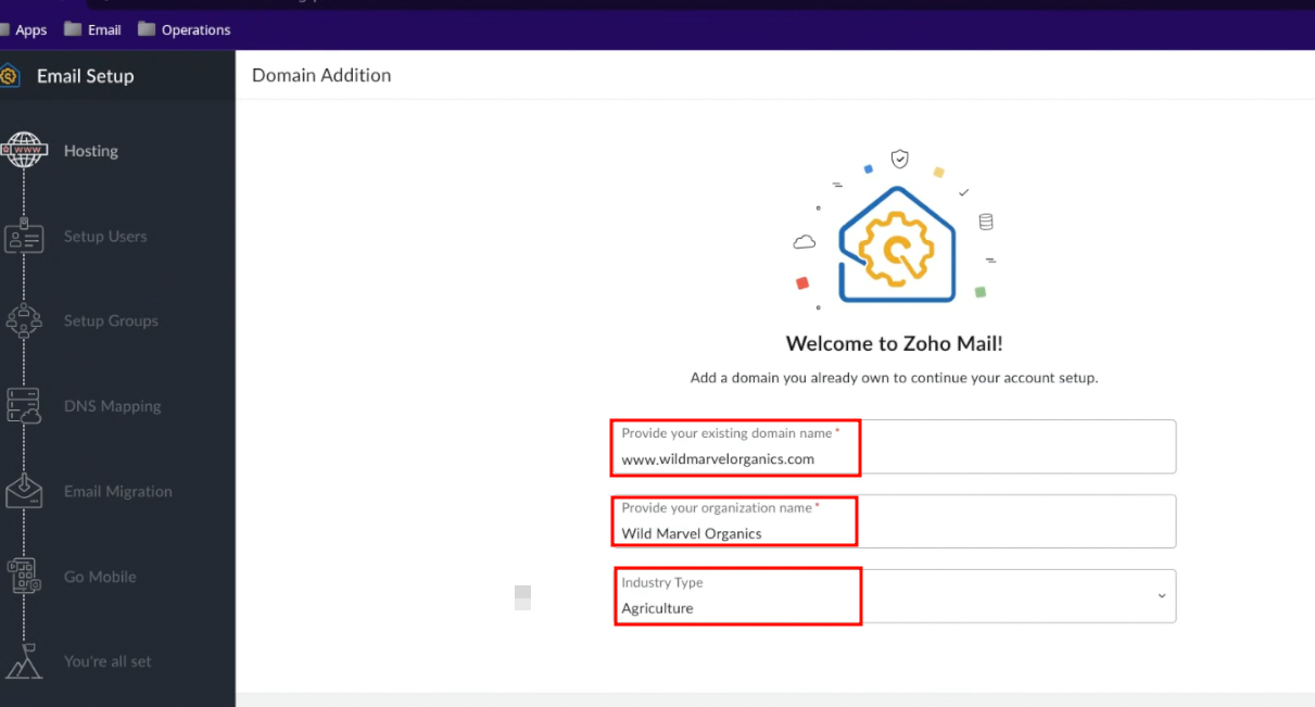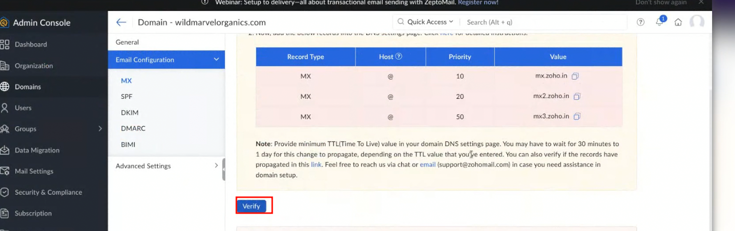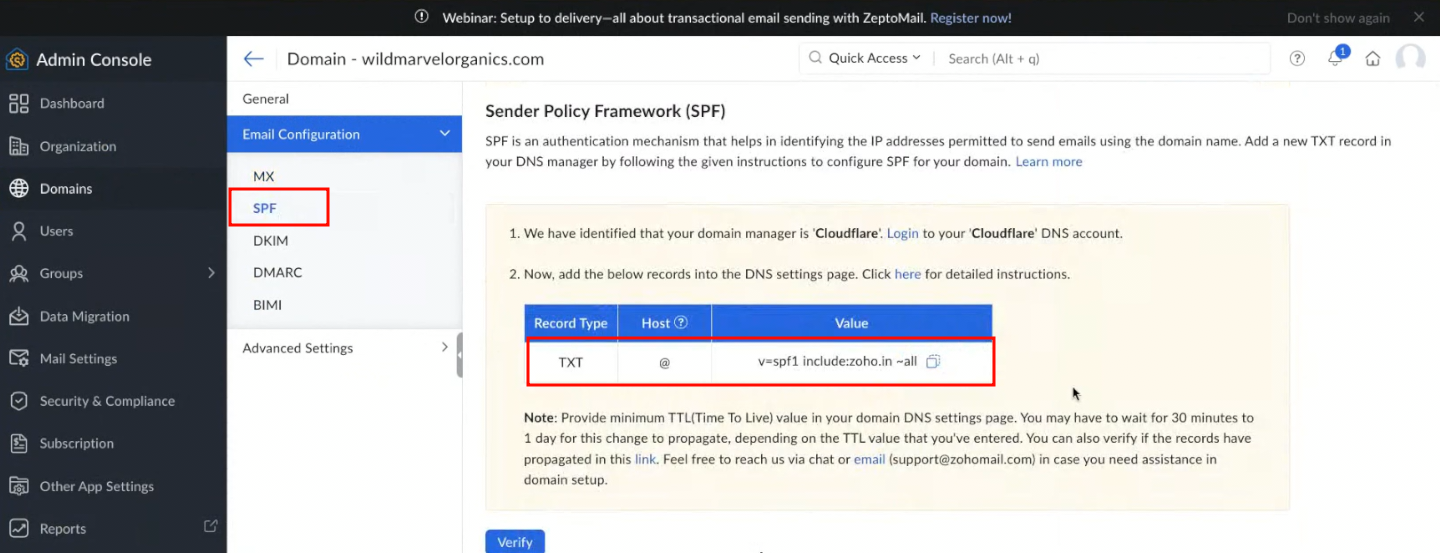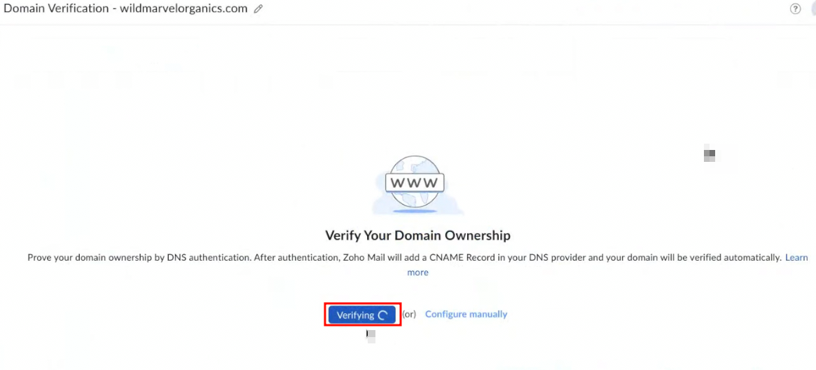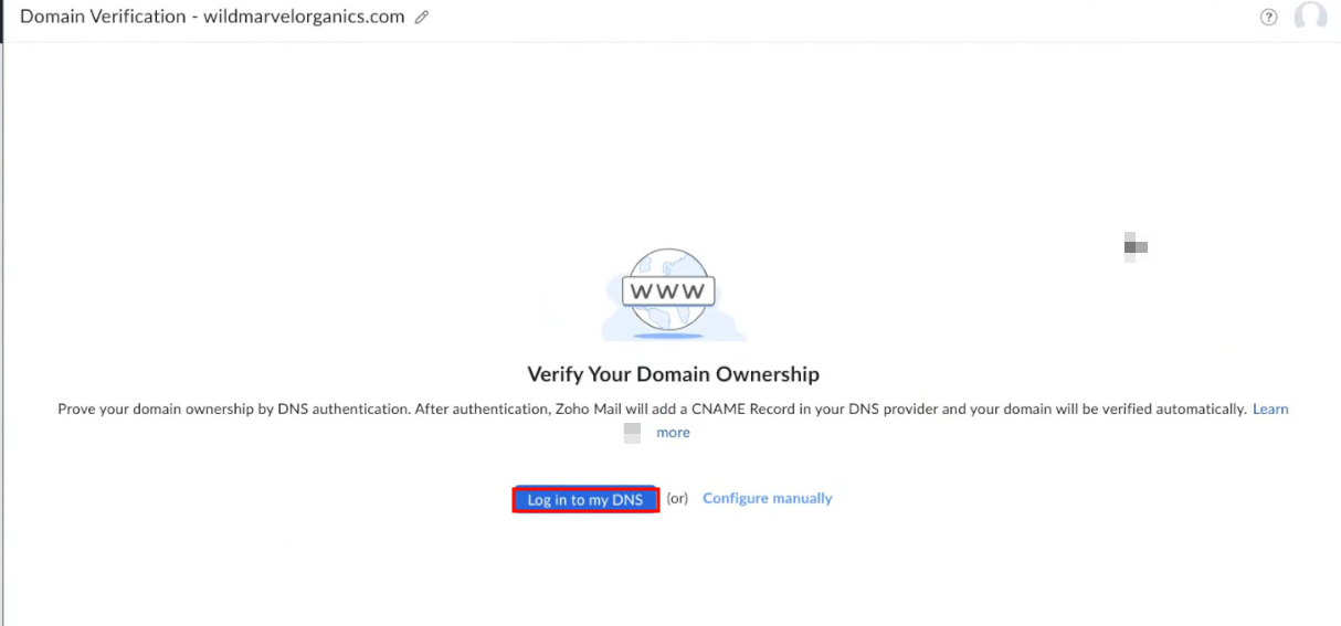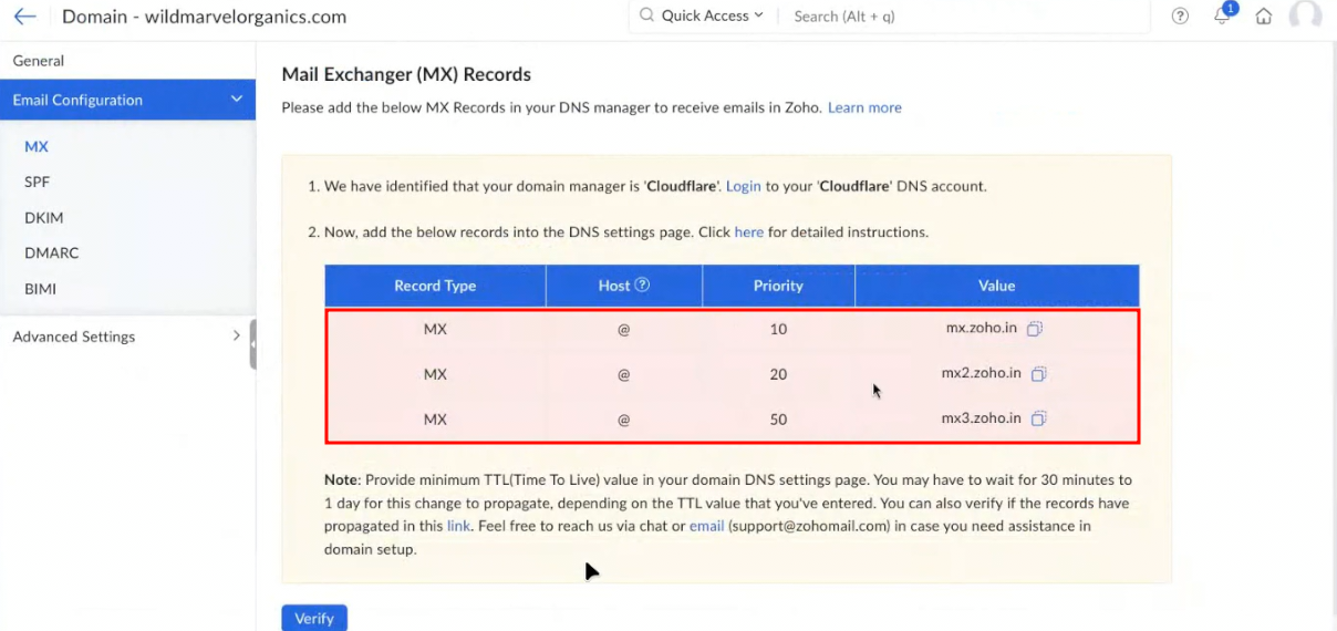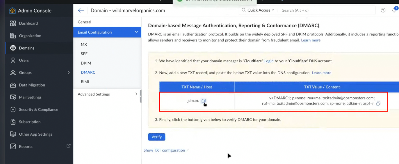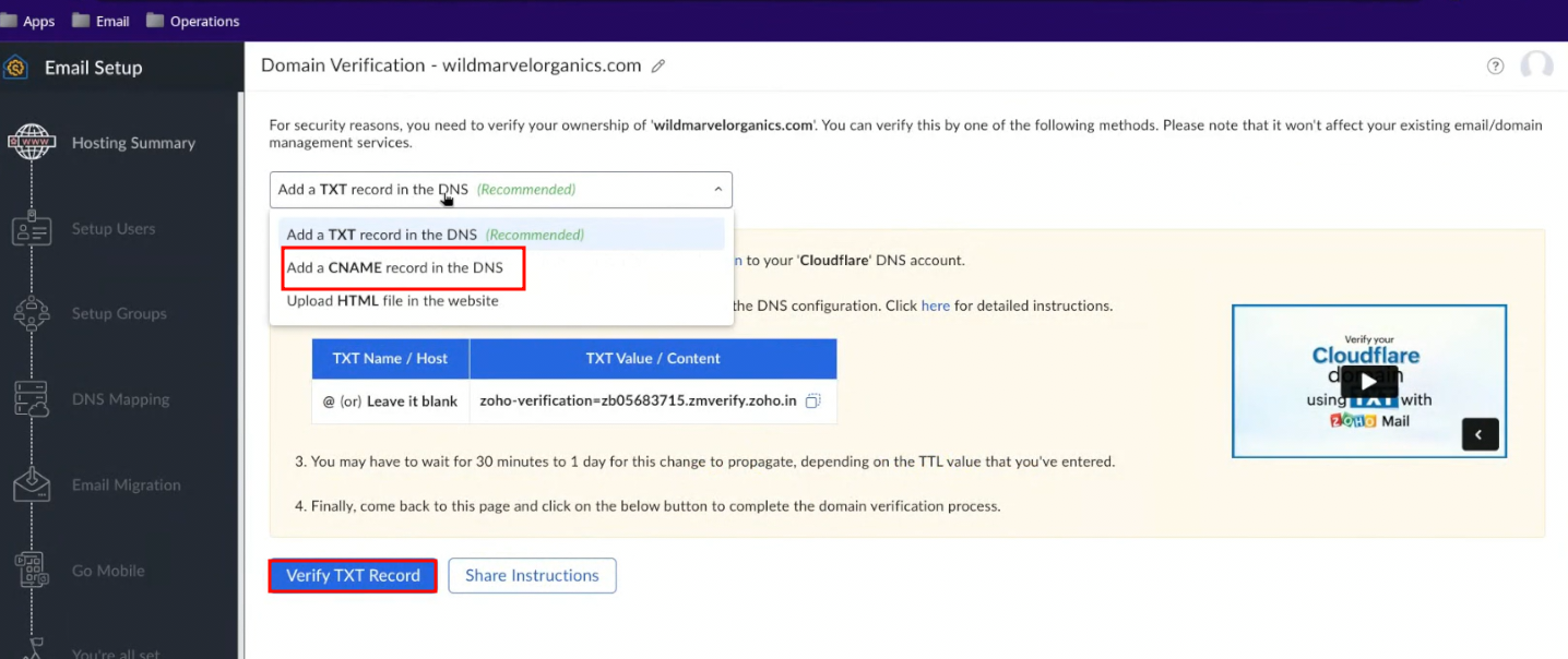 Domain verification to flow the below image.Add CName  and verify TXT Record.