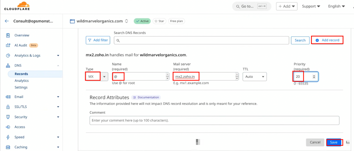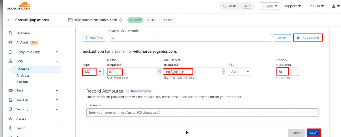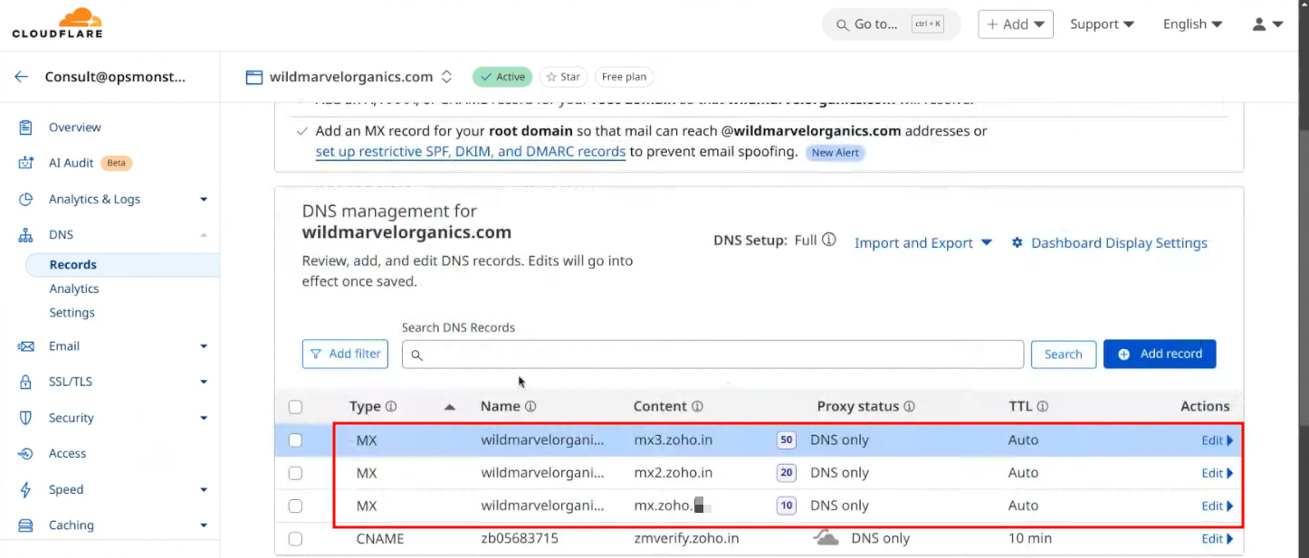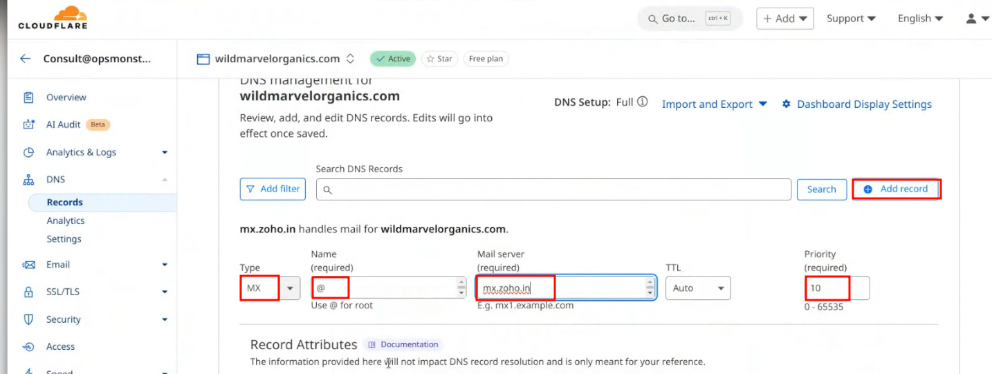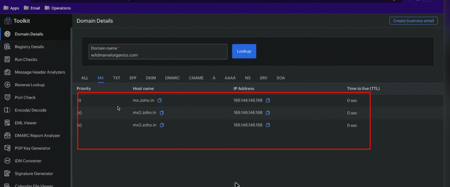 After adding the MX details below image if you want to check,the  final value will be added in below image.