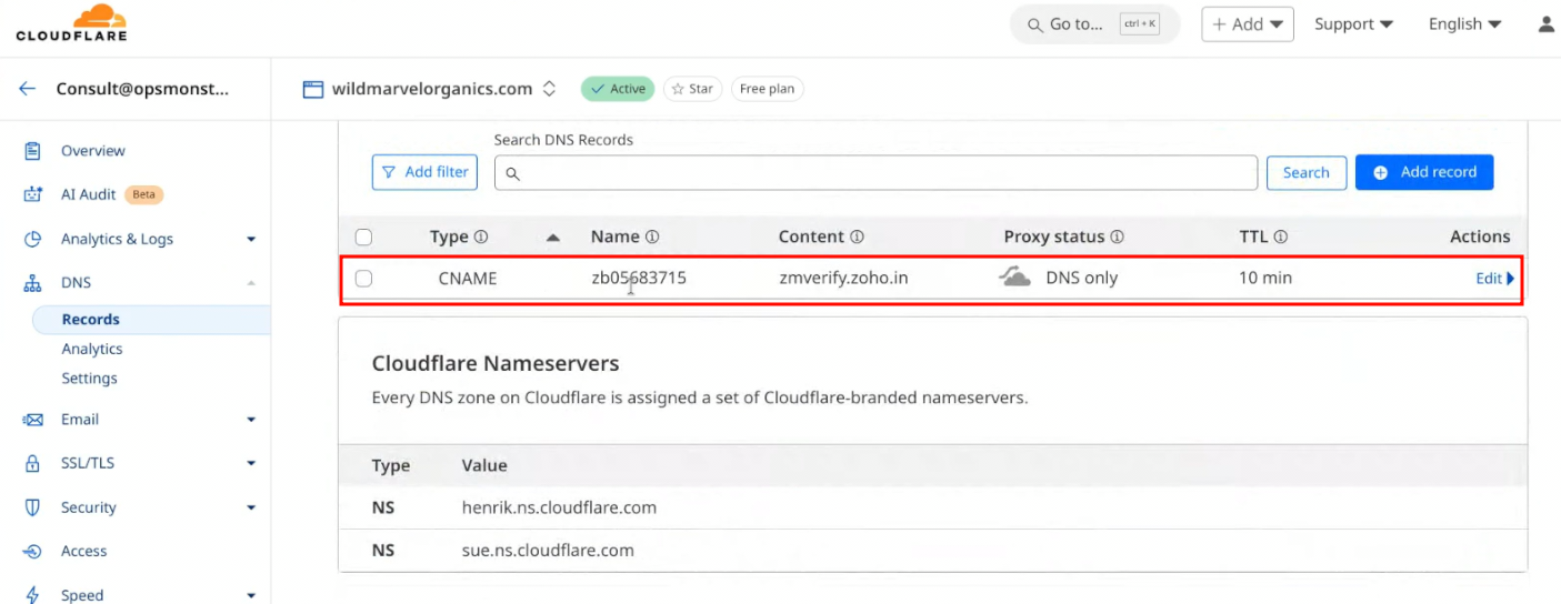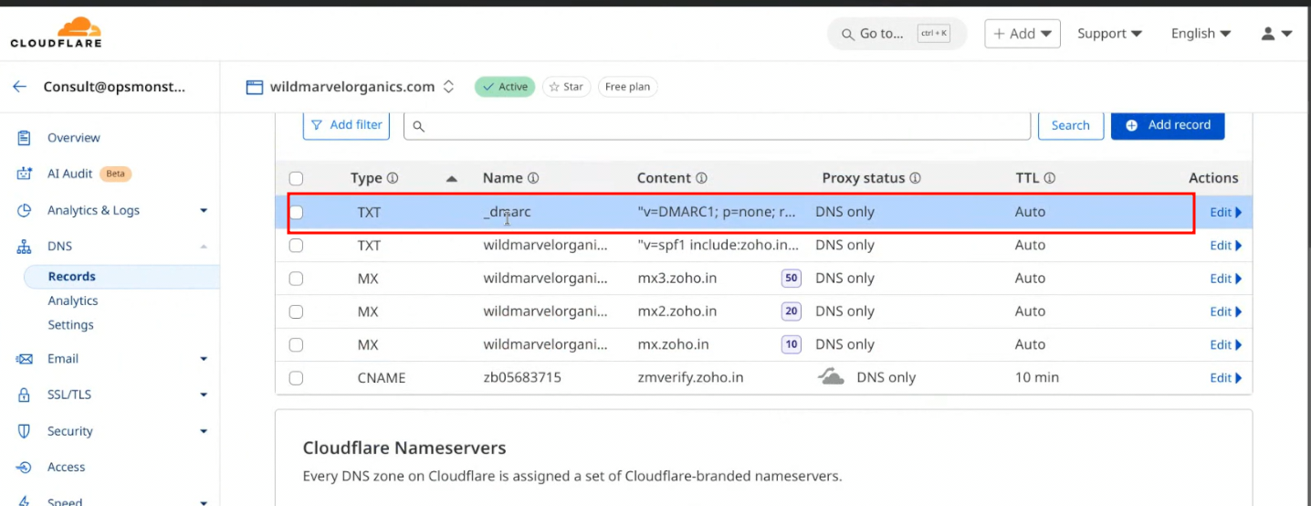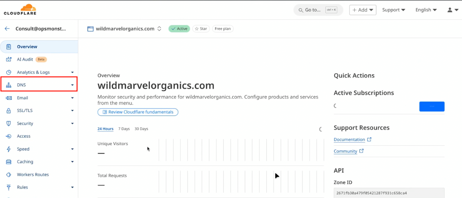 if you click wildmarvelorganics.com it will show the below image,after that click the DNS . Now it will not show any DNS.
