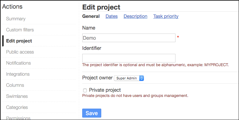 - Personal Projects – Belong to a single user and have no user management. Anyone can create these.