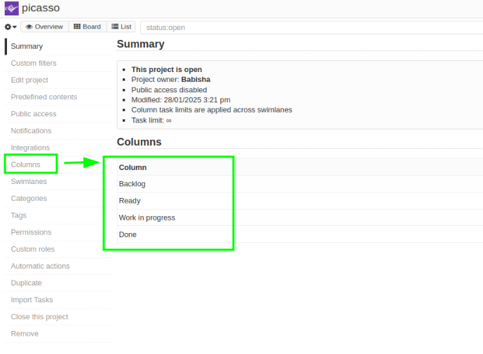 3. If you want to edit your project column