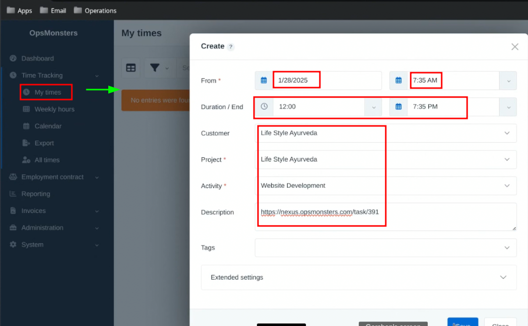 - Go to Time tracking,inside time tracking my times option is there click it.