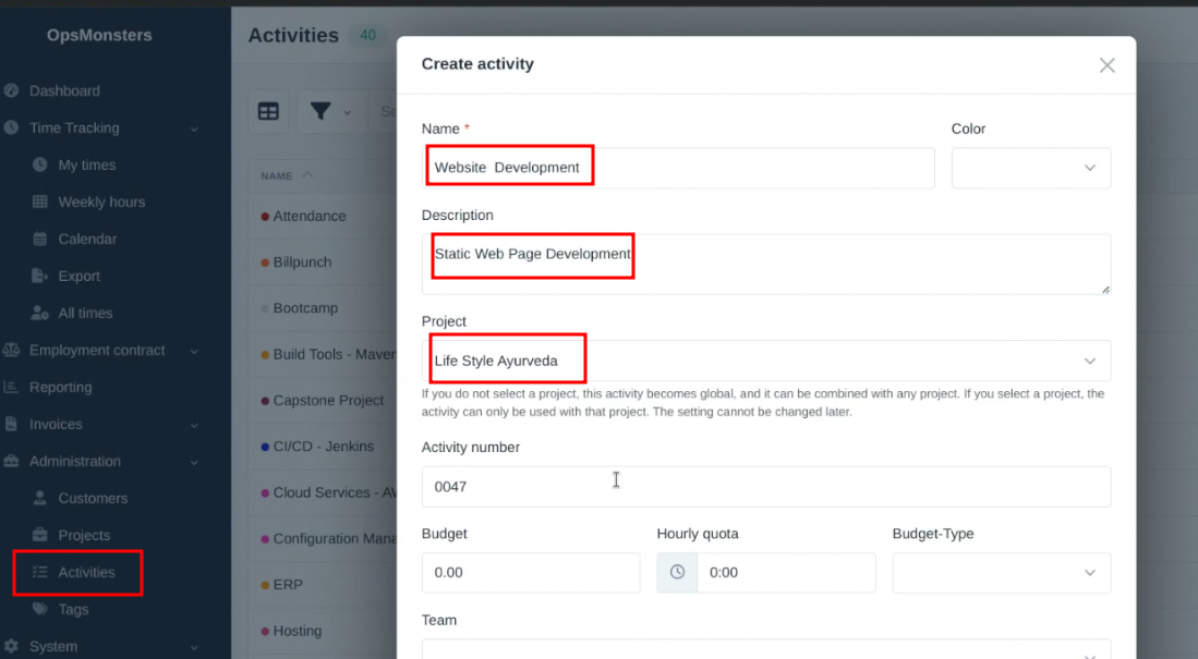 - please provide the Date ,time ,Duration time starting to ending ,customer,project,activity and description .